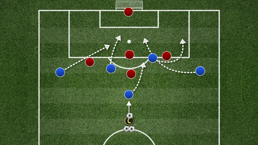 - ในช่วงเวลาที่มีการหมุนเวียนบอล ทีมจะต้องสร้างโครงสร้างใหม่ขึ้นมาโดยธรรมชาติ (ตัวอย่าง: แนวรับสามคนชั่วคราวหากฟูลแบ็คสามารถก้าวขึ้นมาได้)