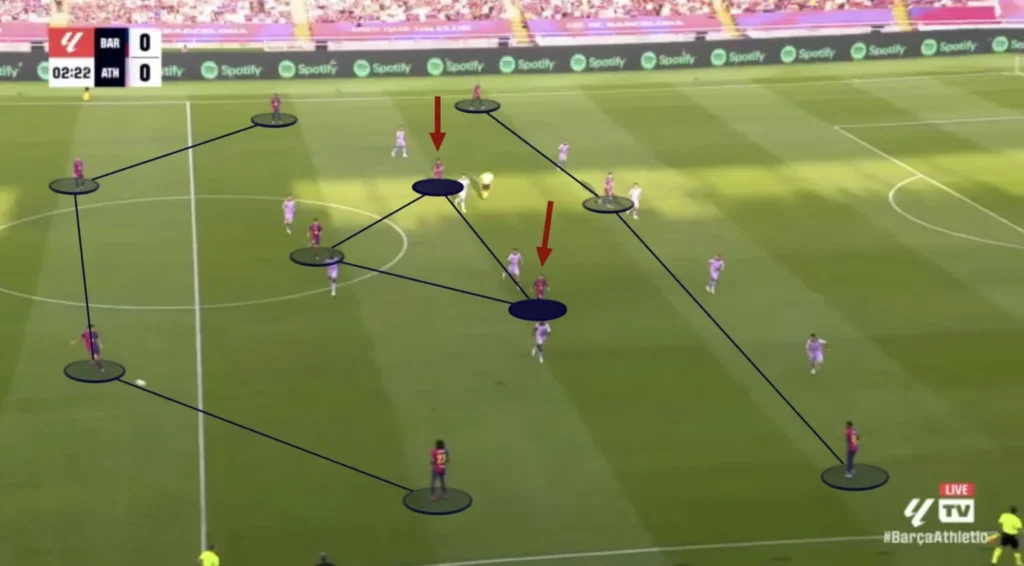 กองกลางตัวรุก (Mezzalas) ช่วยเพิ่มการครองบอลโดยการสร้างมุมโจมตีด้านหลังแนวรับของฝ่ายตรงข้าม ตำแหน่งของพวกเขาทำให้กองหลังต้องตัดสินใจอย่างยากลำบาก: ถอยออกไปปล่อยพื้นที่ว่าง หรือยืนแนวเดิมเพื่อให้ Mezzalas มีเวลาพลิกตัวและเข้าถึงแนวรุกถัดไป