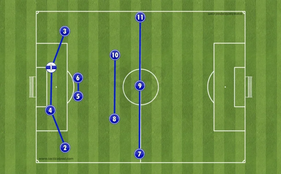 ตัวอย่างเช่น เชลซีจะใช้ การประสานงานของ ผู้เล่นคนที่สามเพื่อหาช่องว่างให้กองหลังตัวกลางเมื่อกองหน้าฝ่ายตรงข้ามกดดันผู้รักษาประตู